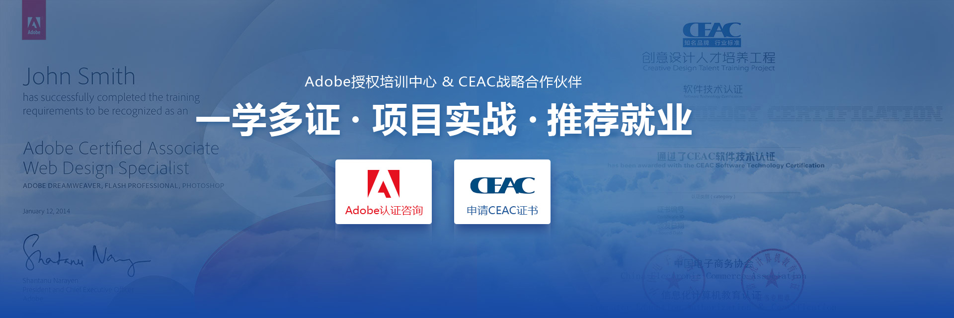 Adobe设计师认证宣讲员,CEAC认证成员指导委员,设计师;