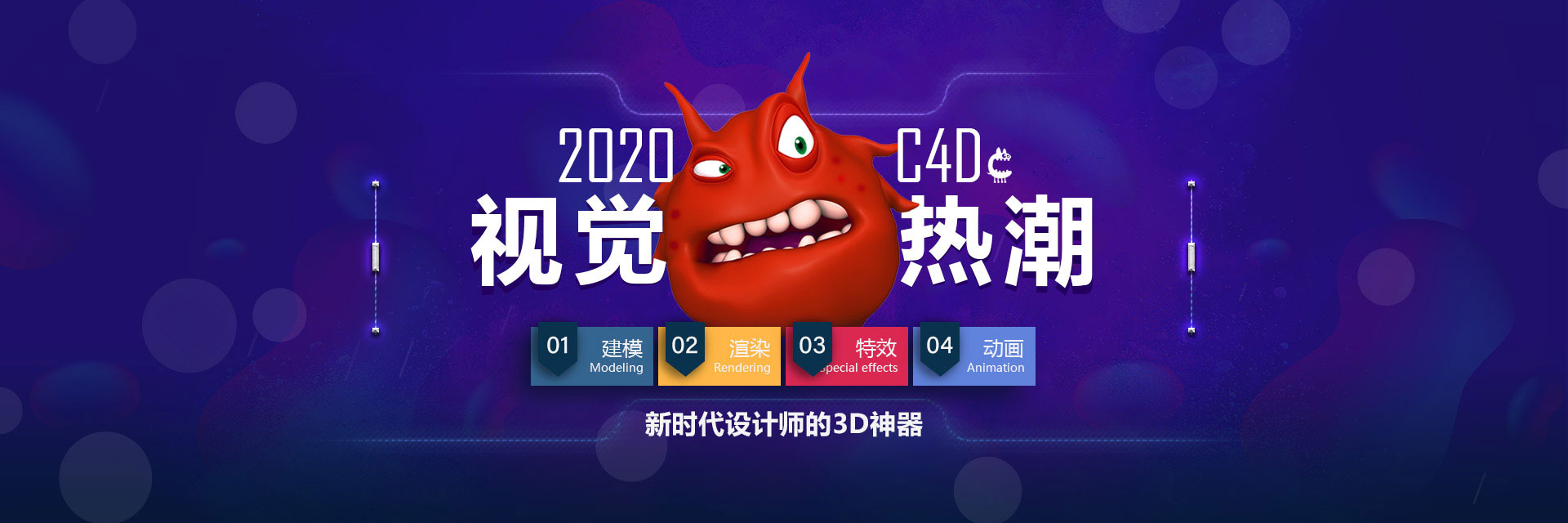 banner,图标等涉及三维效果的都可用C4D制作,操作简单且效率高;